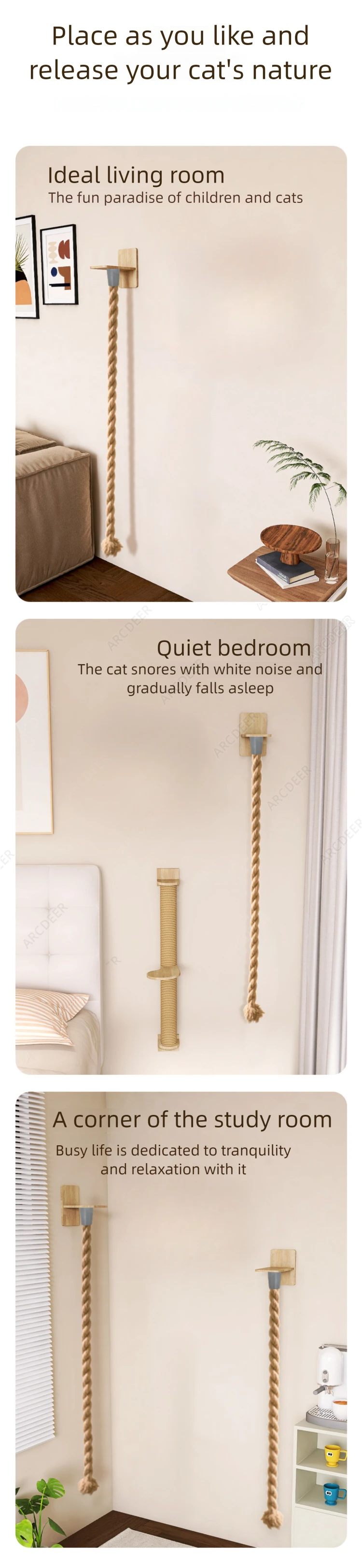 Sturdy and durable: Our cat climbing rope scratching post set is made of high-quality solid wood and 2 cm thick jute rope, which is sturdy and safe, not easy to break, and can withstand the weight of most cats, helping cats sharpen their claws and meet their scratching needs.