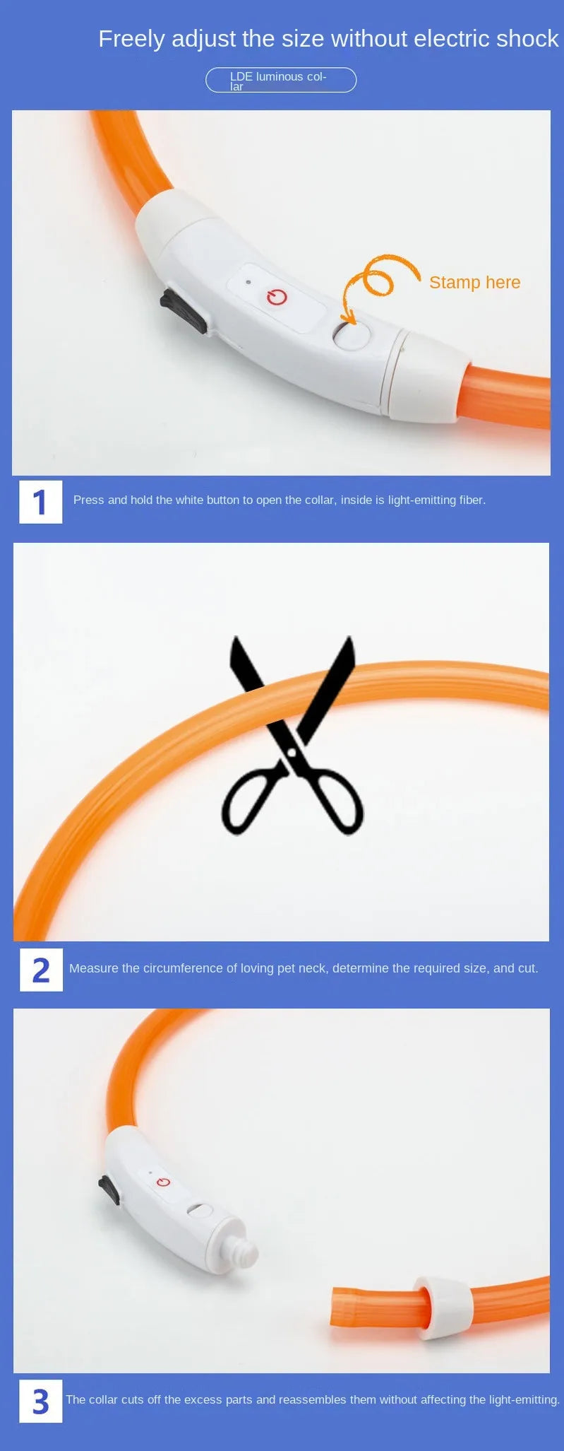 4.One Size Fits All: Necklace measures 35cm/50cm/70cm(Note: Length includes switch) -Can be cut to any length using scissors to fit your pet! Perfect fit!